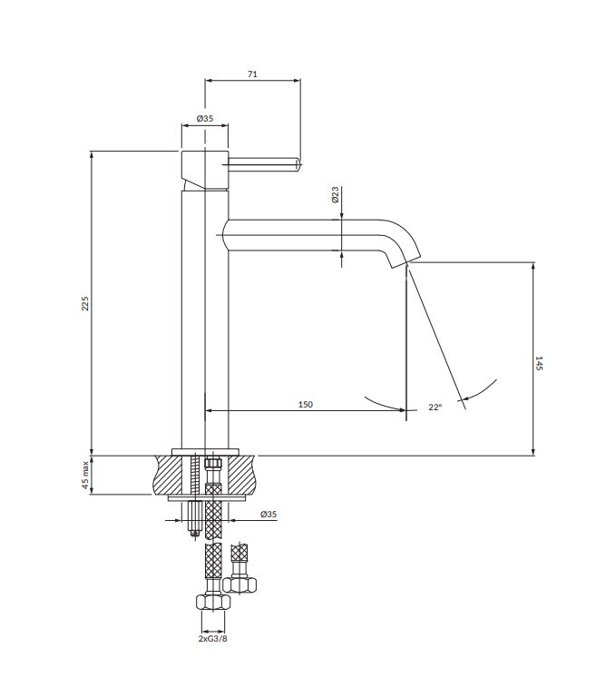 Zasięg wylewki: 15 cm