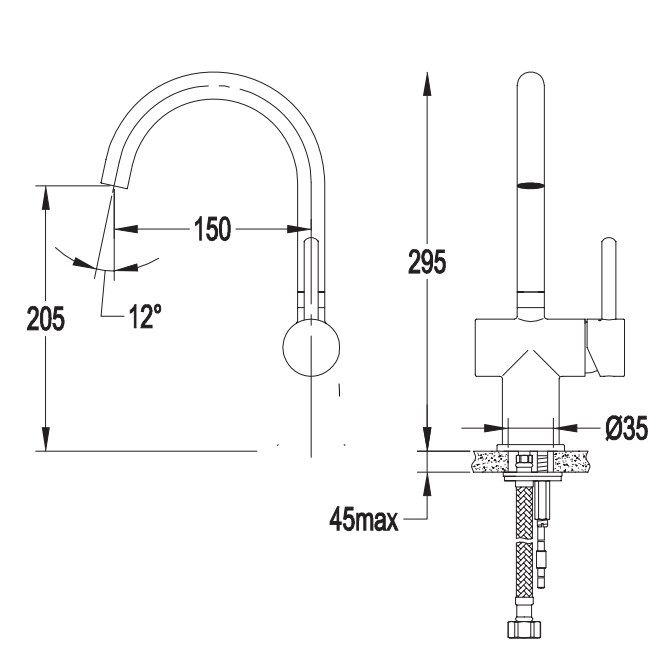 Zasięg wylewki: 15 cm