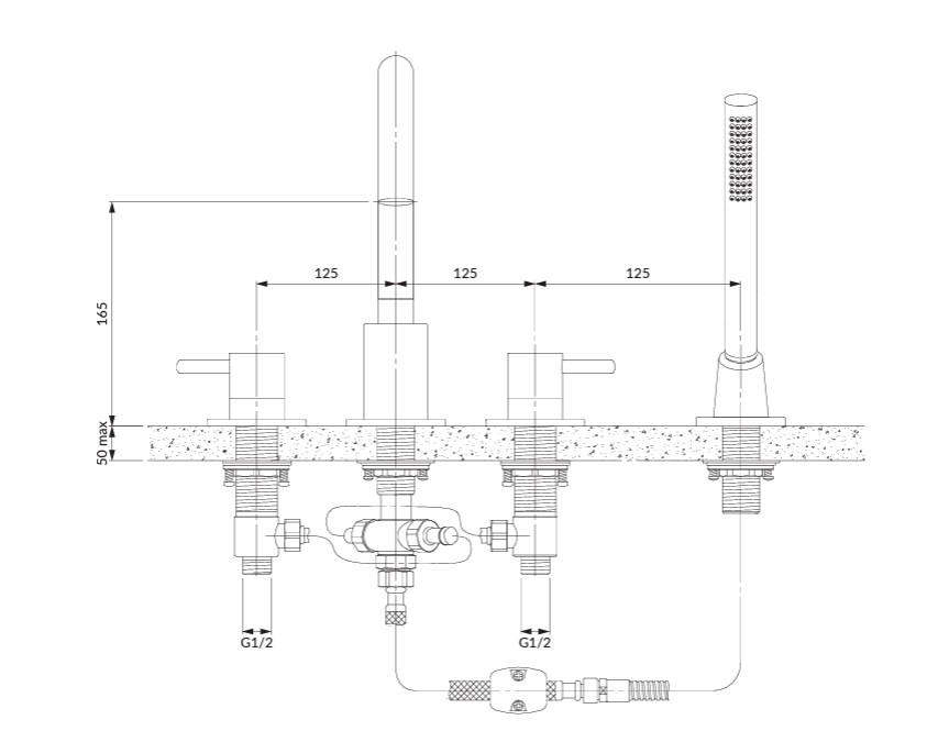 - rączka prysznicowa mosiężna, 1-funkcyjna