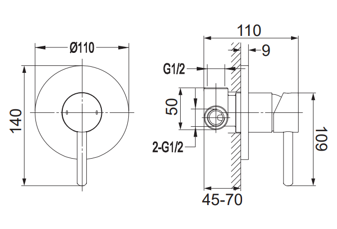 Minimalna głębokość w ścianie niezbędna do zabudowy baterii: 4,5 cm
