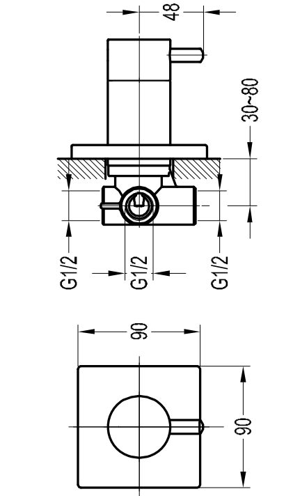 Jedno wejście wody zmieszanej ½", trzy wyjścia wody zmieszanej ½"