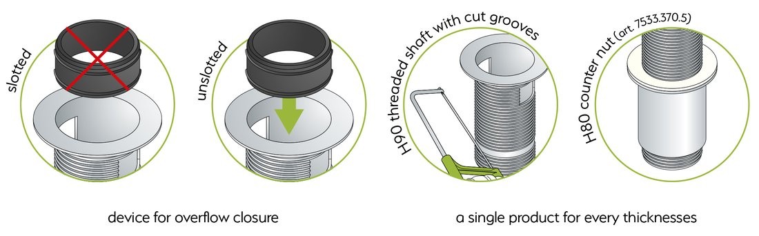Zastosowanie: umywalki z przelewem i bez przelewu