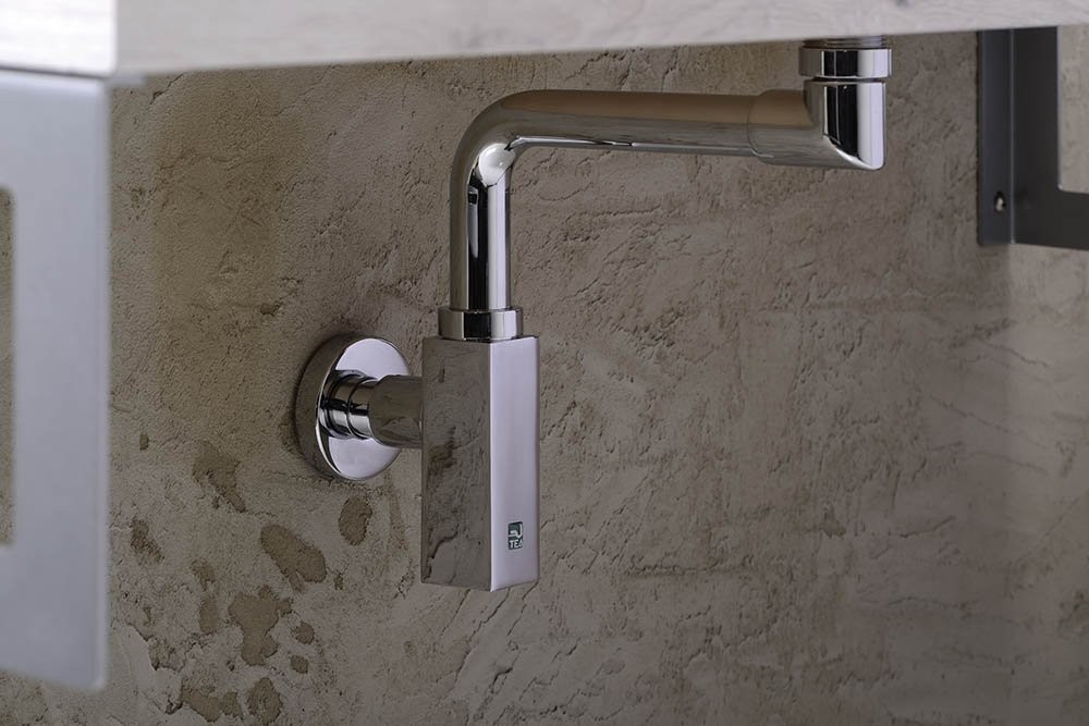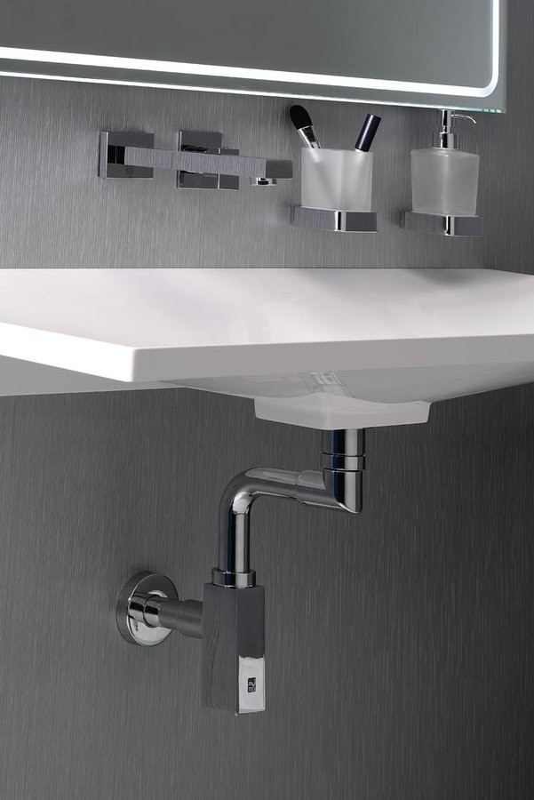Specjalna konstrukcja syfonu pozwala na odprowadzenie wody bezpośrednio pod umywalką do ściany i pionowo w dół do kanalizacji. Dzięki temu: