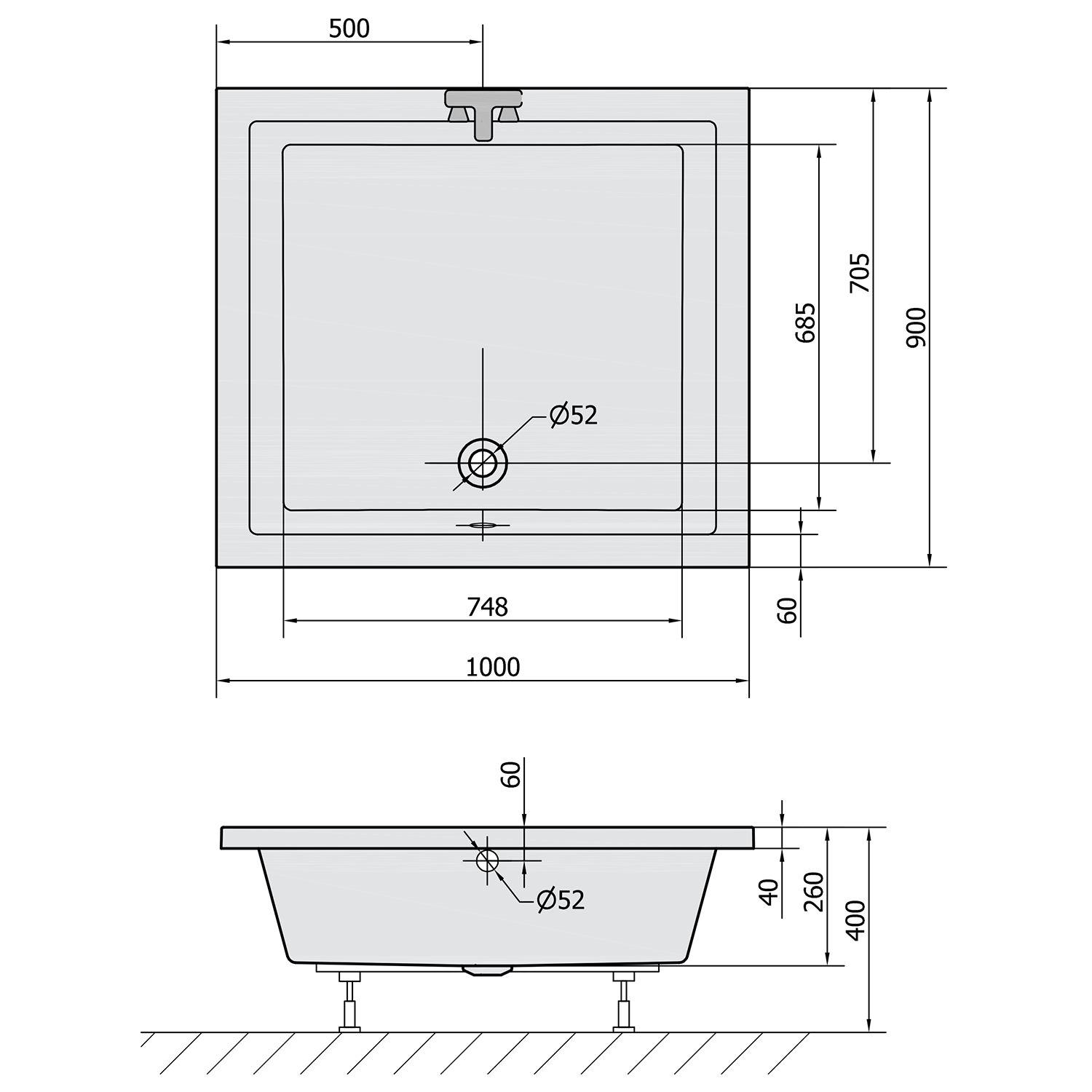 POLYSAN 72340 DEEP brodzik prysznicowy głęboki 100x90x26cm, biały