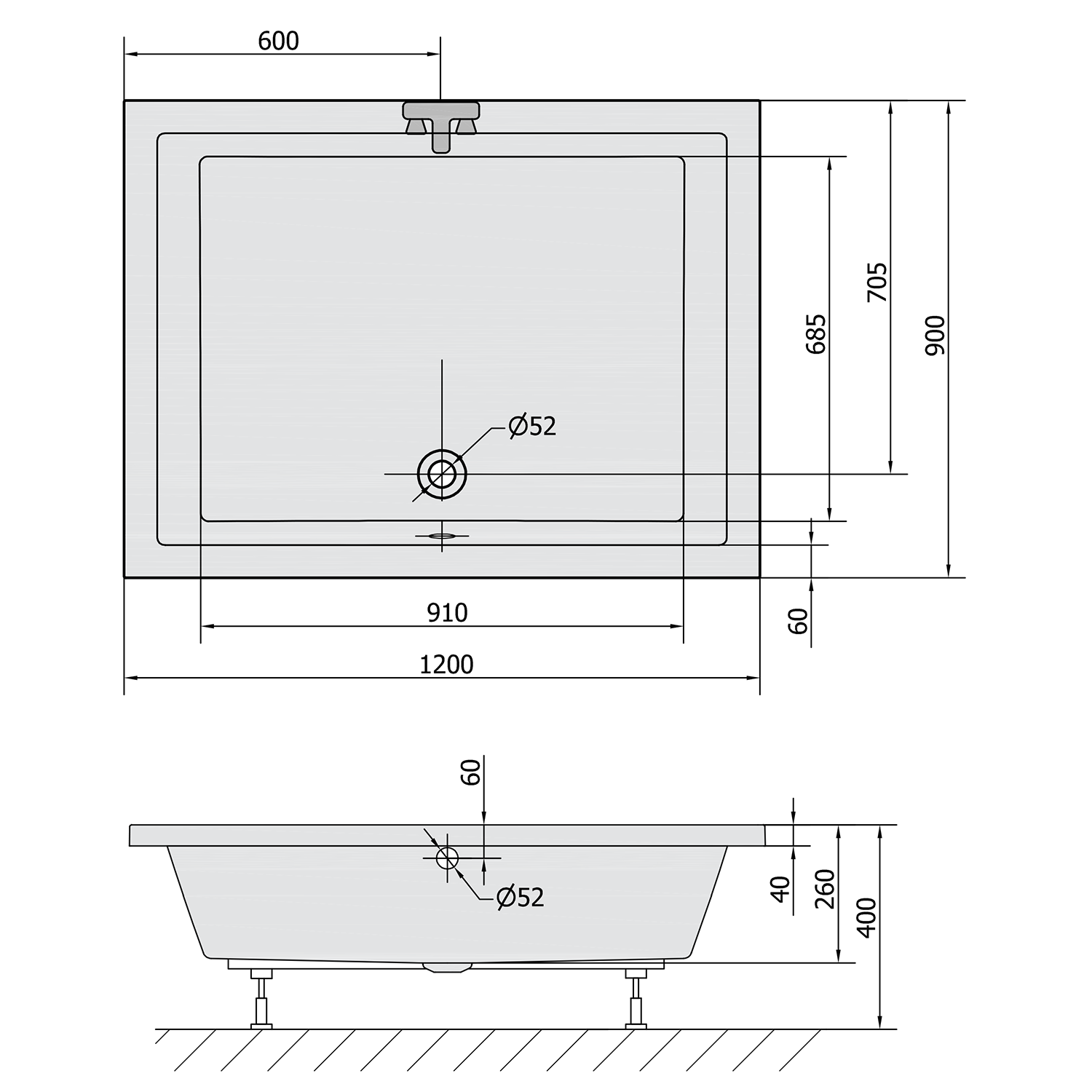 - Brodzik wyposażony jest w otwór przelewowy, dzięki czemu można ją bezpiecznie napełniać