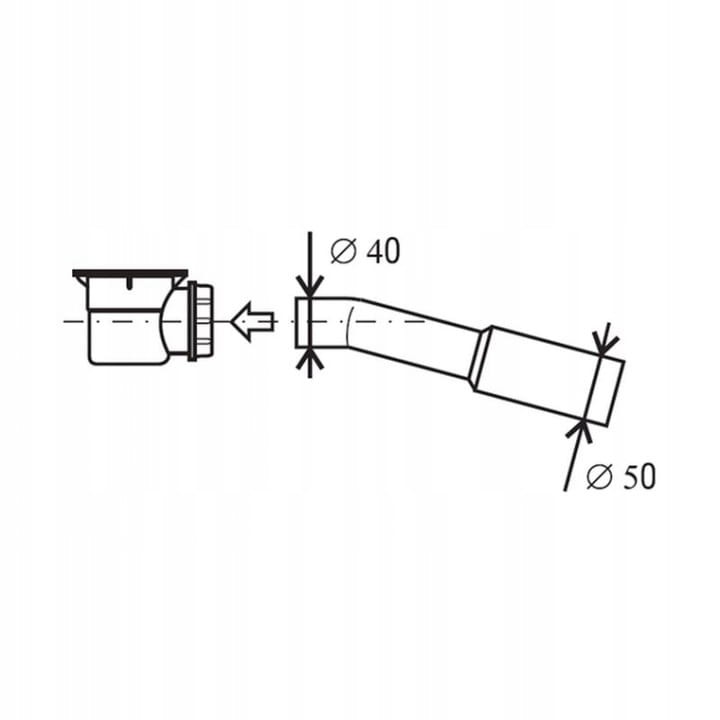 Redukcja syfonowa 40/50 40/50 niweluje różnicę między rozmiarem wyjścia syfonu RAVAK (średnica 40 mm) a rurą odpływu (średnica 50 mm).