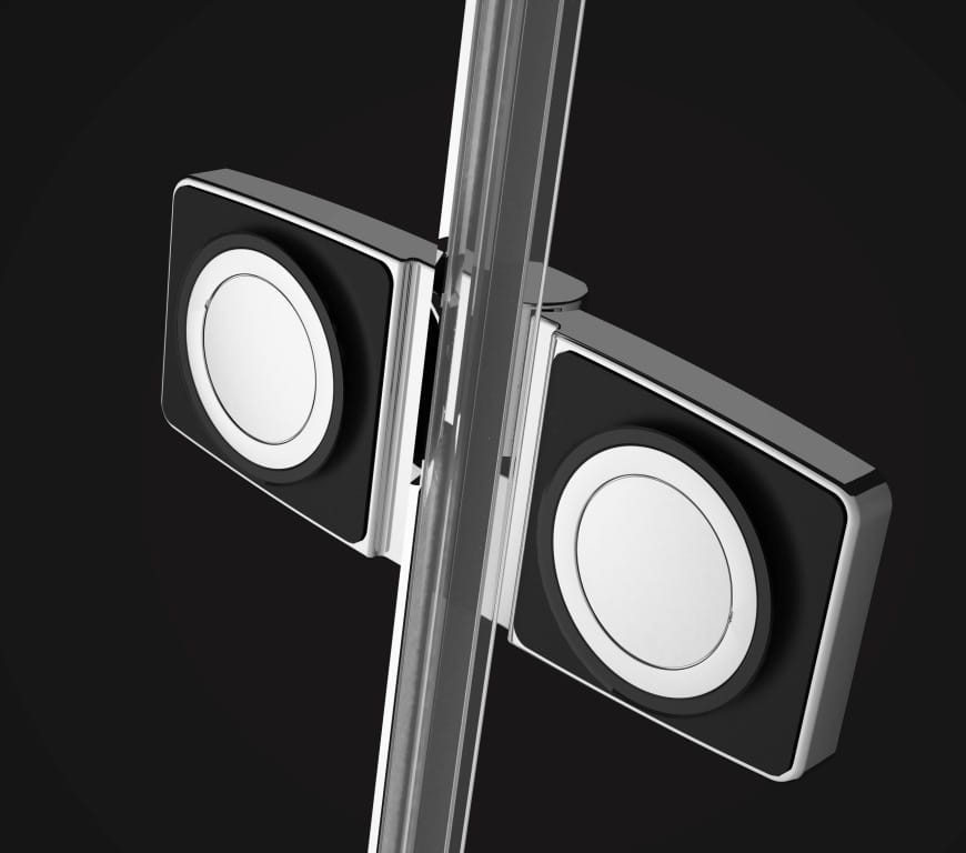 Fuenta New DWB - ekskluzywne drzwi do montażu we wnęce prysznicowej. Drzwi posiadają zawiasy z mechanizmem unoszenia ponadto posiadają powłoką Easy Clean ułatwiającą czyszczenie. Profile drzwi wykonane są z aluminium w kolorze chrom.Szyby są z hartowanego, bezpiecznego szkła o grubości 6mm. . Zawiasy zostały zlicowane dzięki czemu czyszczenie drzwi jest proste.
