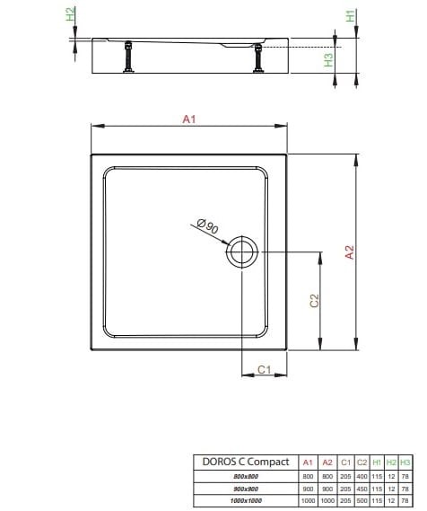 Radaway Doros C Compact 800x800x115mm Stone Antracyt SDRC8080-05-64S