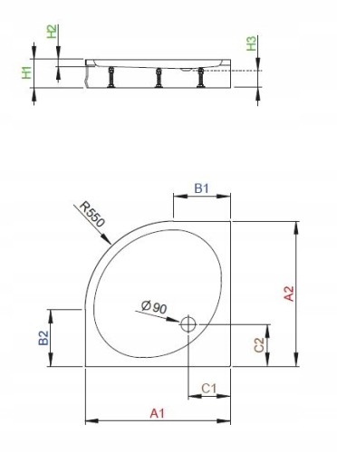 Otwór na syfon Ø 90mm.