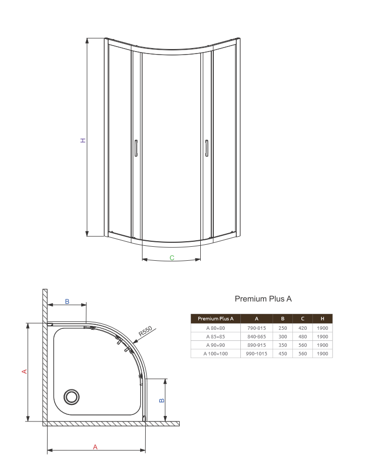 Premium Plus A to najwyższej klasy kabina prysznicowa półokrągła z szkła hartowanego, z powłoką ułatwiającą czyszczenie Easy Clean. Kabina ta posiada estetyczne, łożyskowane, skrętne rolki w chromowanej obudowie, które zapewniają drzwiom wyjątkowo ciche i łatwe przesuwanie. Dodatkowo rolki te pozwalają na wypięcie drzwi na czas mycia. W kabinach Premium Plus zastosowano ergonomiczne eleganckie chromowane uchwyty zamiast gałek. Szczelnośc zapewniają elastomerowe uszczelki.