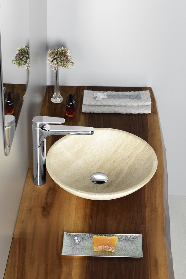 SAPHO 2401-01 BLOK 1 – umywalka kamienna nablatowa Ø40 cm, polerowany beżowy trawertyn