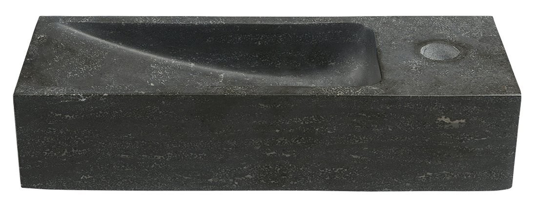 Kompaktowa i nowoczesna umywalka z kolekcji BLOK to idealne rozwiązanie do bardzo małych łazienek oraz toalet. Wykonana z naturalnego kamienia w eleganckim, antracytowym kolorze, wyróżnia się unikalną strukturą – każda sztuka posiada indywidualny rysunek i fakturę.