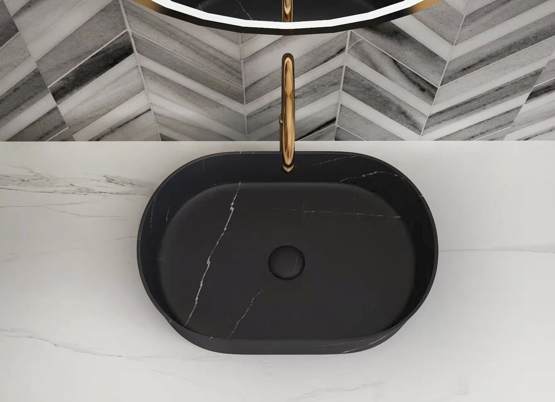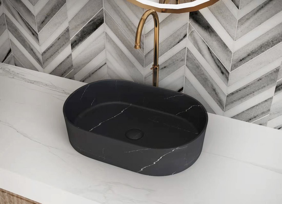 SAPHO 2401-51 BLOK – umywalka kamienna nablatowa 55 × 37 cm, czarny mat Marquin (owalna)