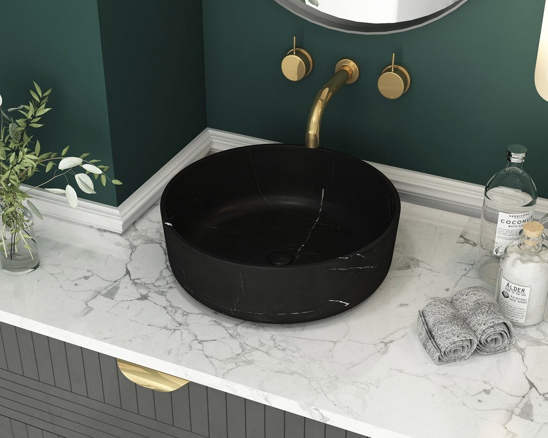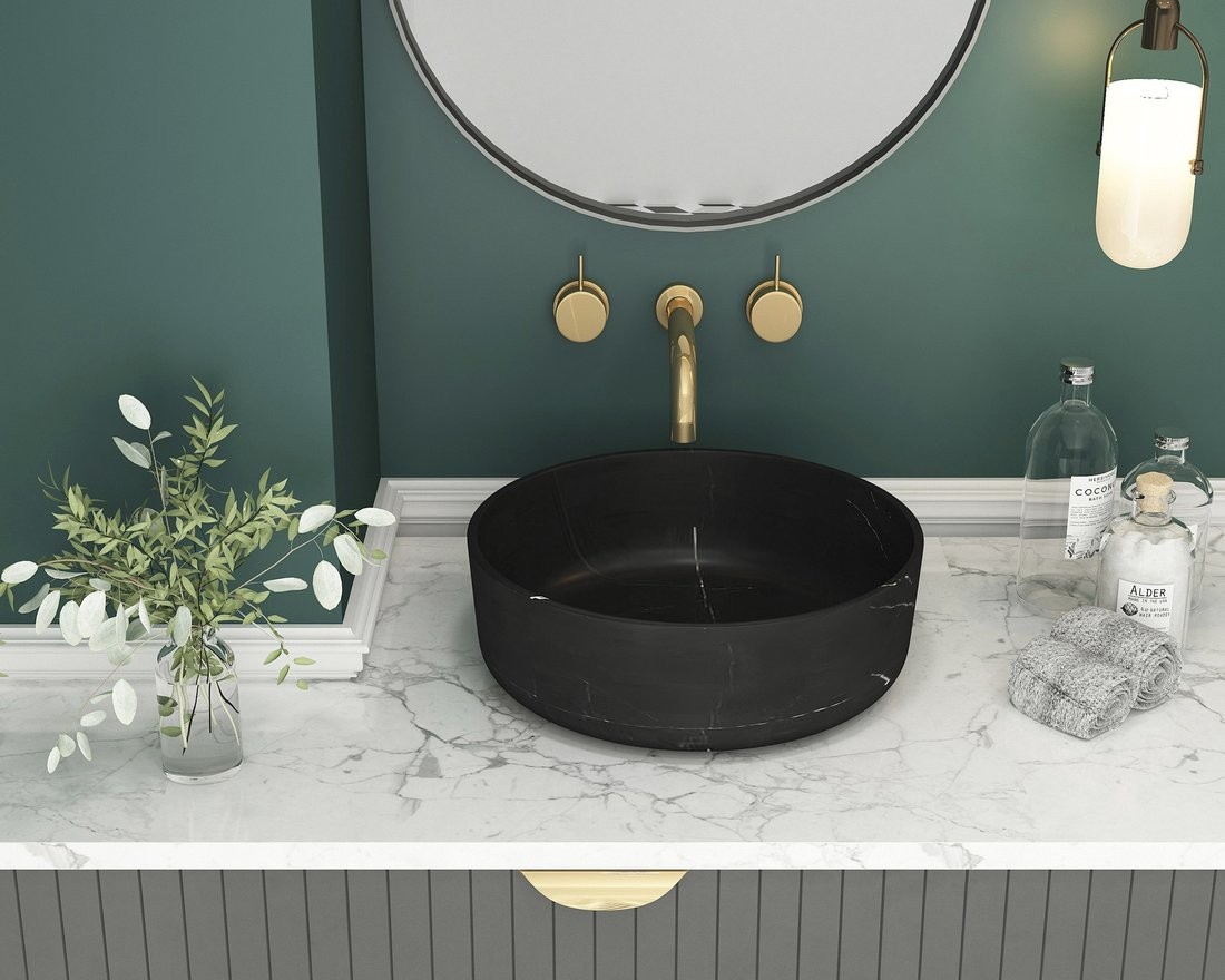 SAPHO 2401-52 BLOK – umywalka kamienna nablatowa Ø40 cm, czarny matowy Marquin