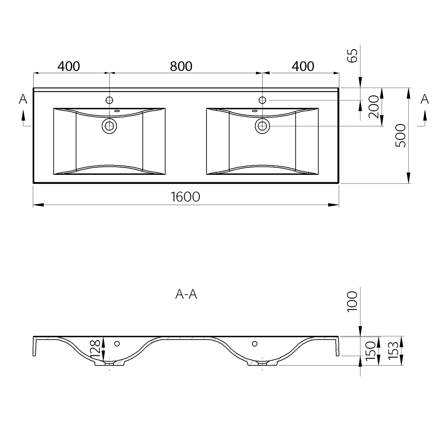 podwójna umywalka kompozytowa o szerokości 160 cm