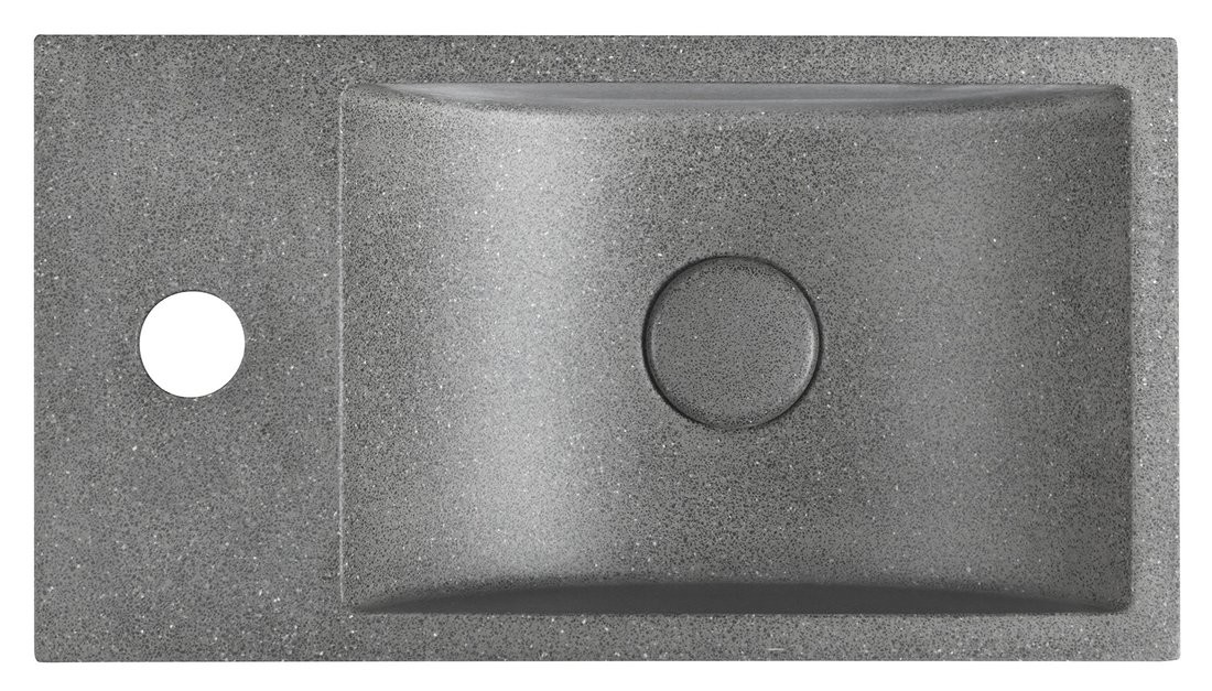 SAPHO AR403 CREST L – umywalka betonowa 40 × 22 cm, czarny granit (bateria po lewej), z korkiem