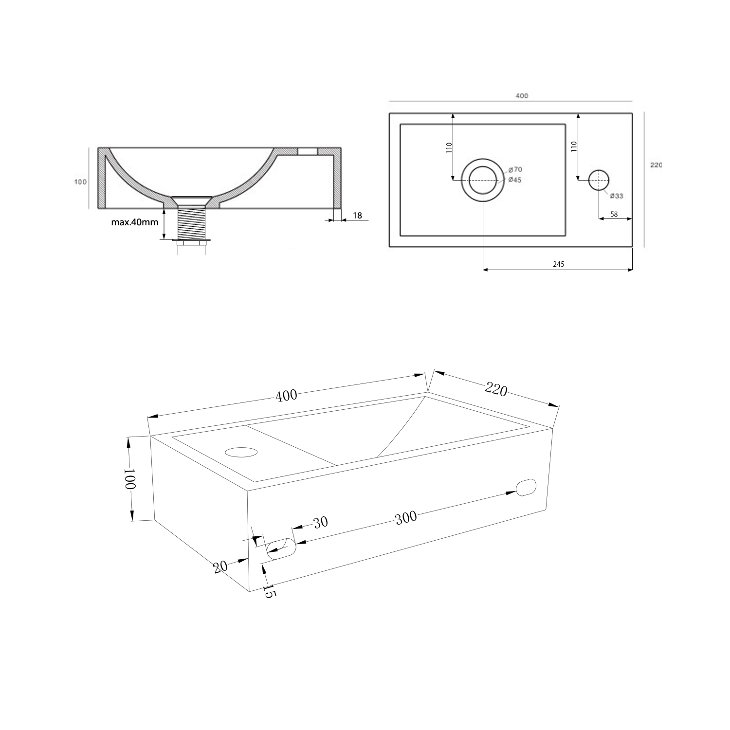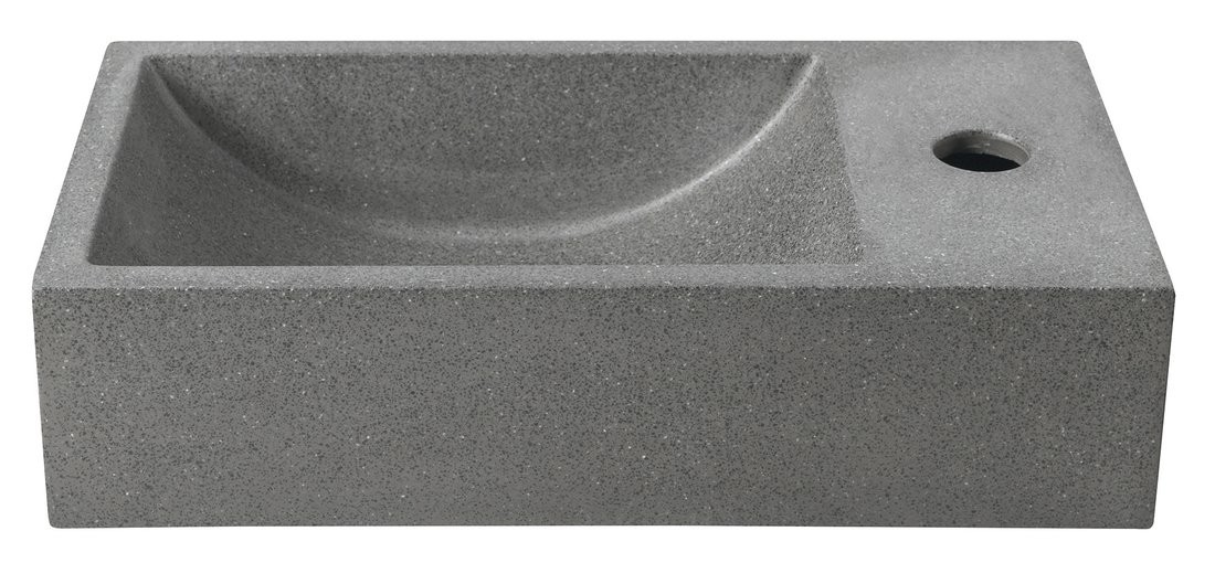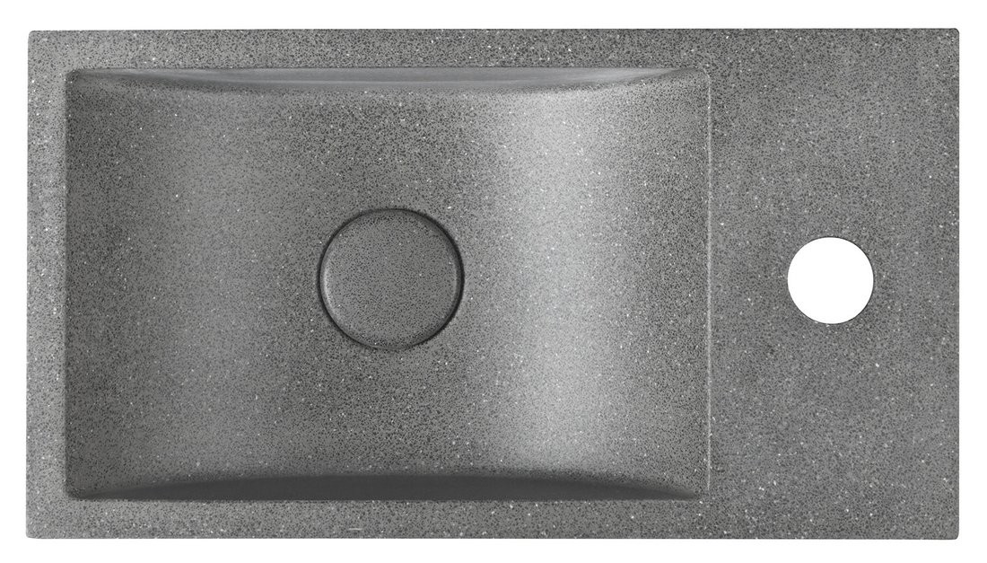 SAPHO AR409 CREST R – umywalka betonowa 40 × 22 cm, czarny granit (bateria po prawej), z korkiem