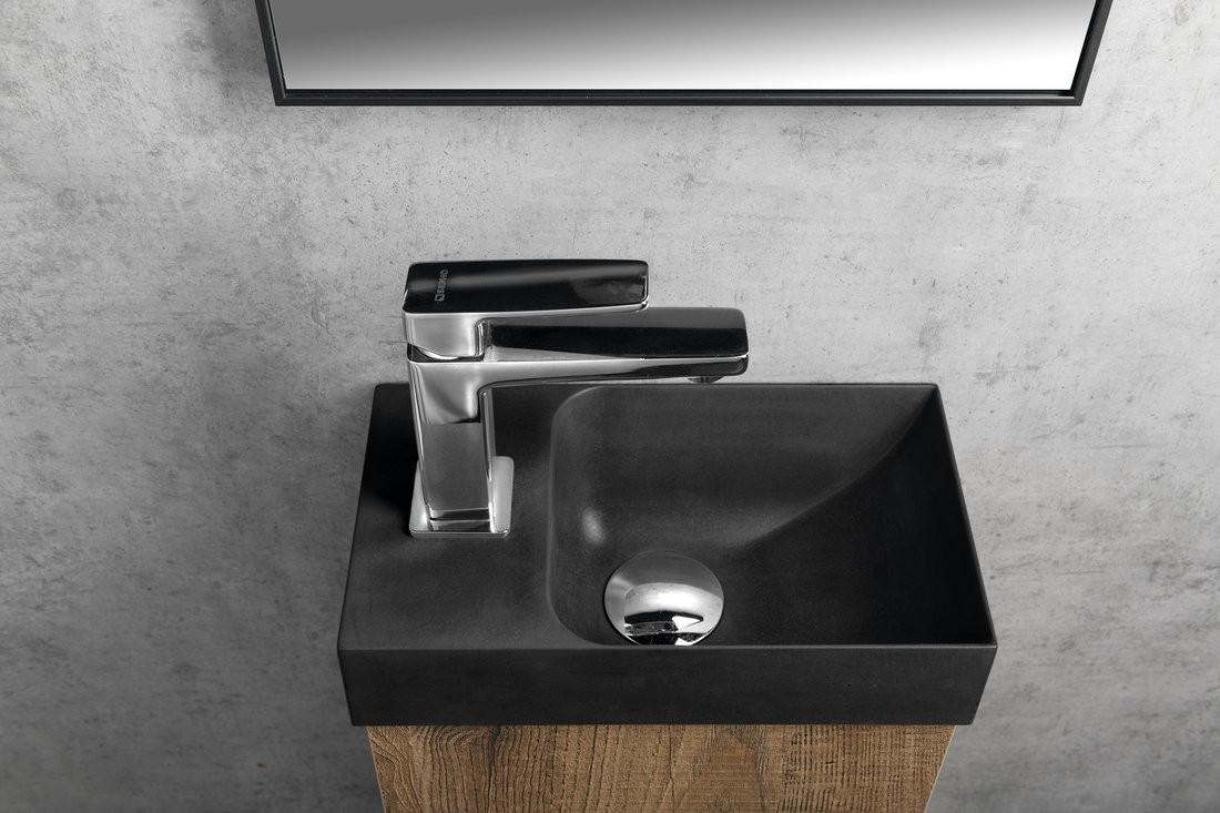 SAPHO PK30016 PICCOLINO – umywalka betonowa 30,8 × 17 cm, antracyt (bateria po lewej)