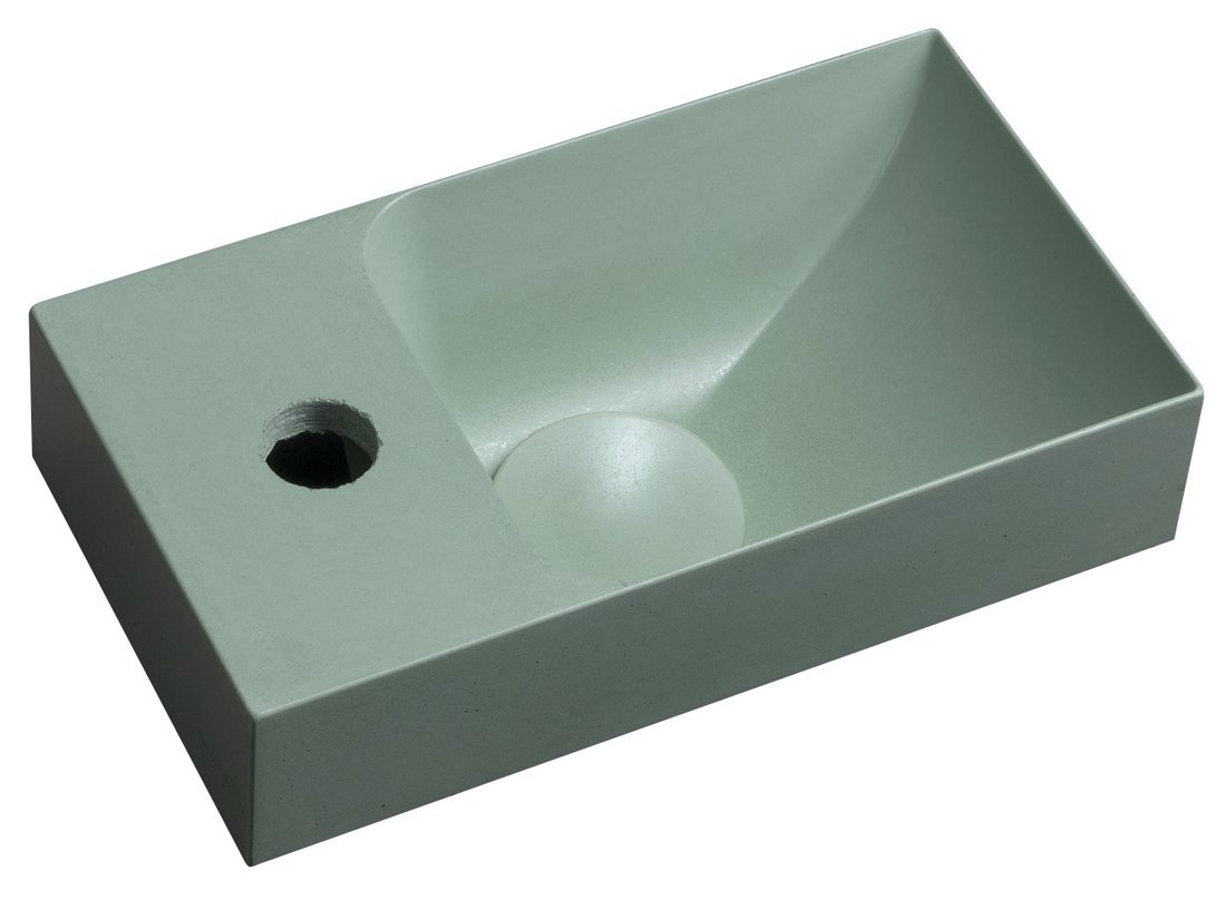 SAPHO PK30023 PICCOLINO – umywalka betonowa 30,8 × 17 cm, zielona (bateria po lewej stronie)