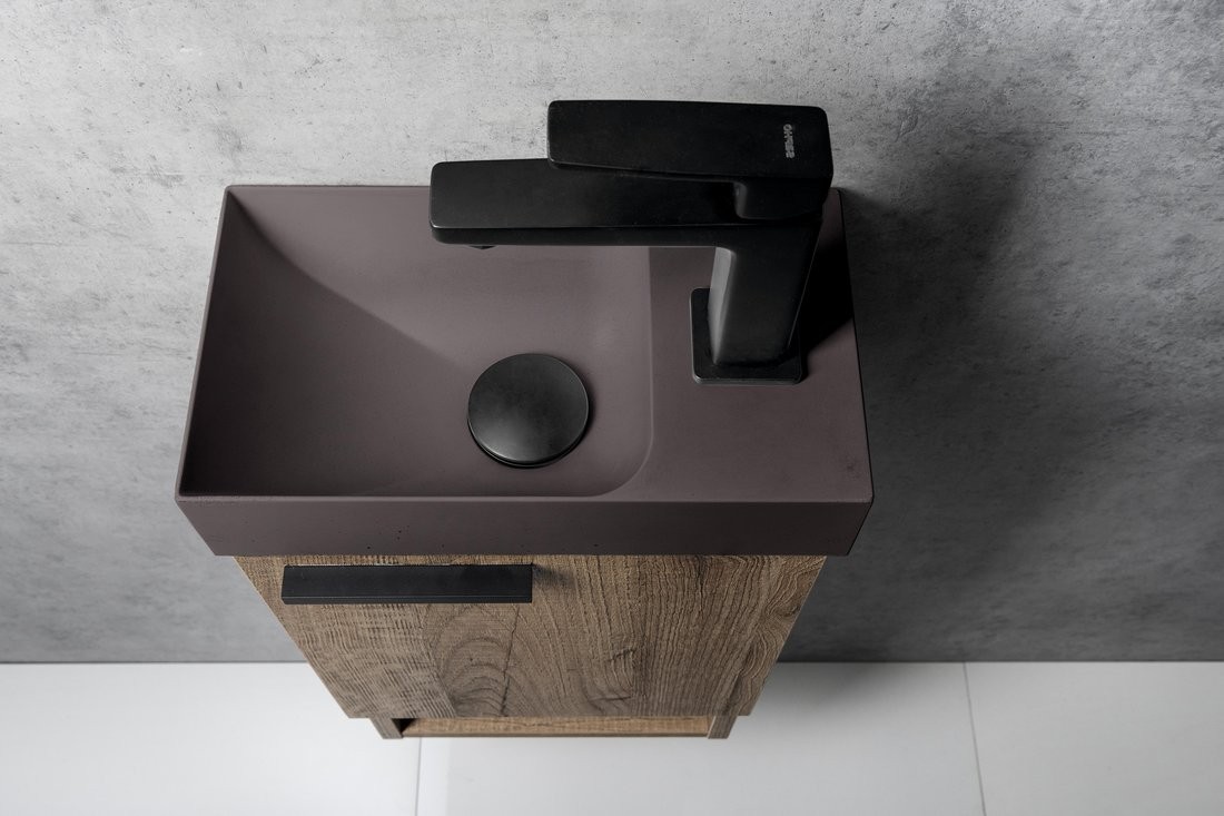 SAPHO PK30515 PICCOLINO – umywalka betonowa 30,8 × 17 cm, ciemny brąz (bateria po prawej)