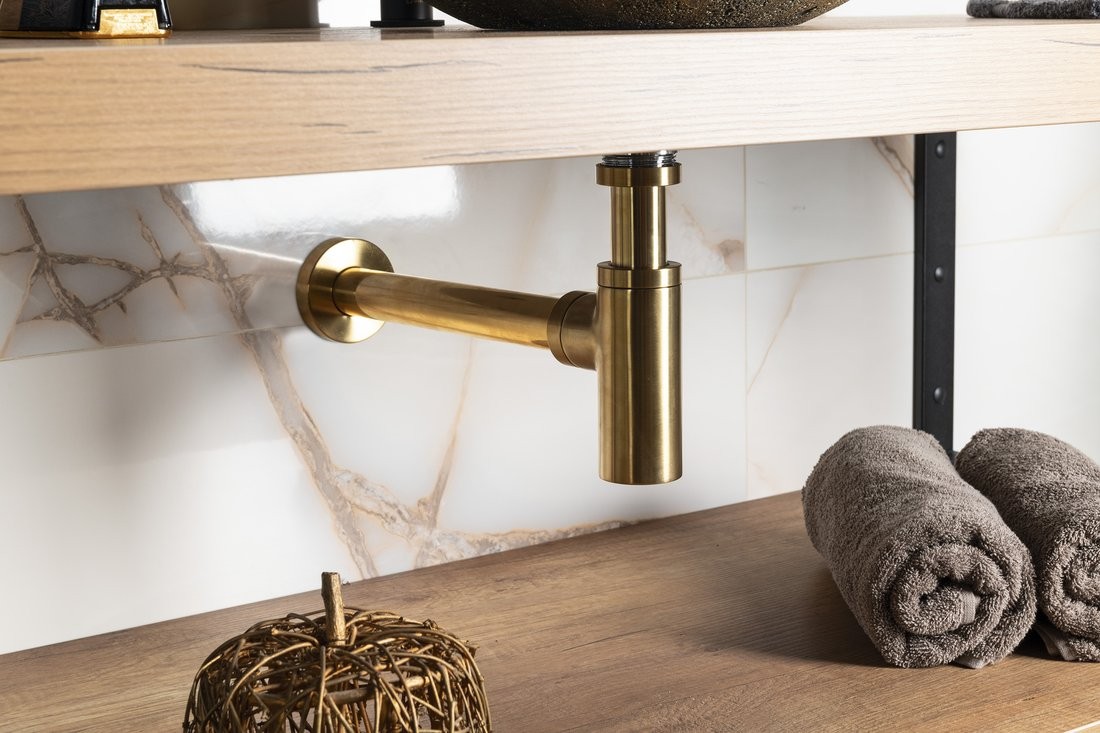 SAPHO SI519 Syfon umywalkowy 5/4", odpływ 32mm, złoto mat
