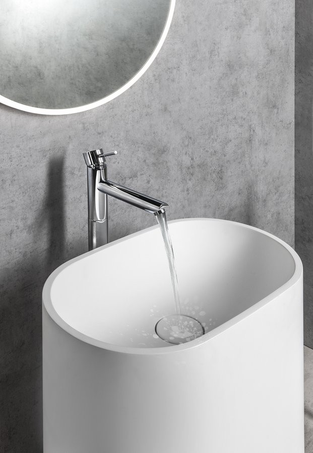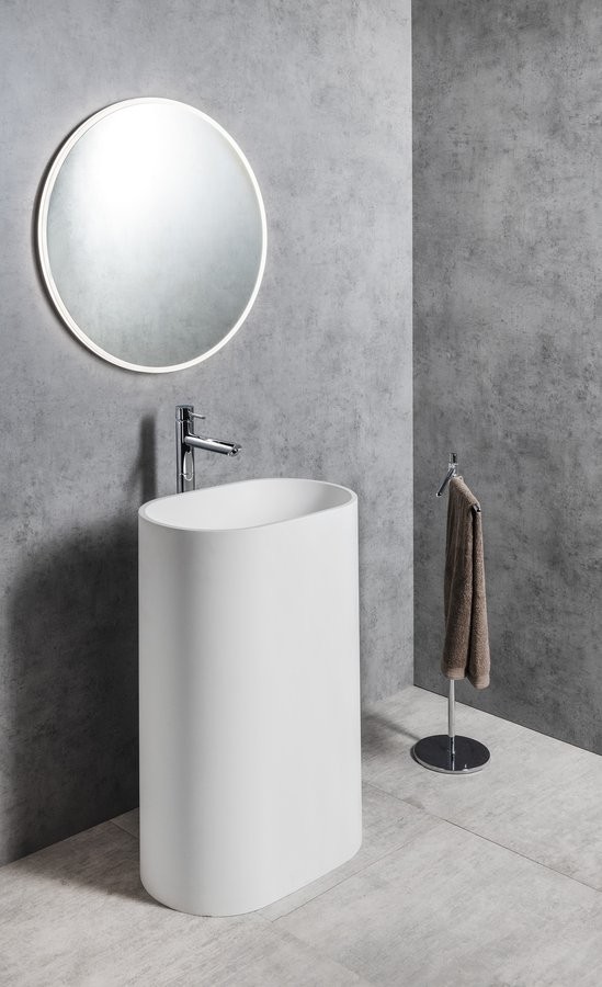 SAPHO TR565 TREVA to designerska umywalka wolnostojąca o eleganckiej, owalnej formie, która doskonale podkreśli charakter nowoczesnej łazienki. Smukła sylwetka oraz subtelne wykończenie w kolorze biały mat nadają wnętrzu lekkości i ponadczasowej estetyki.