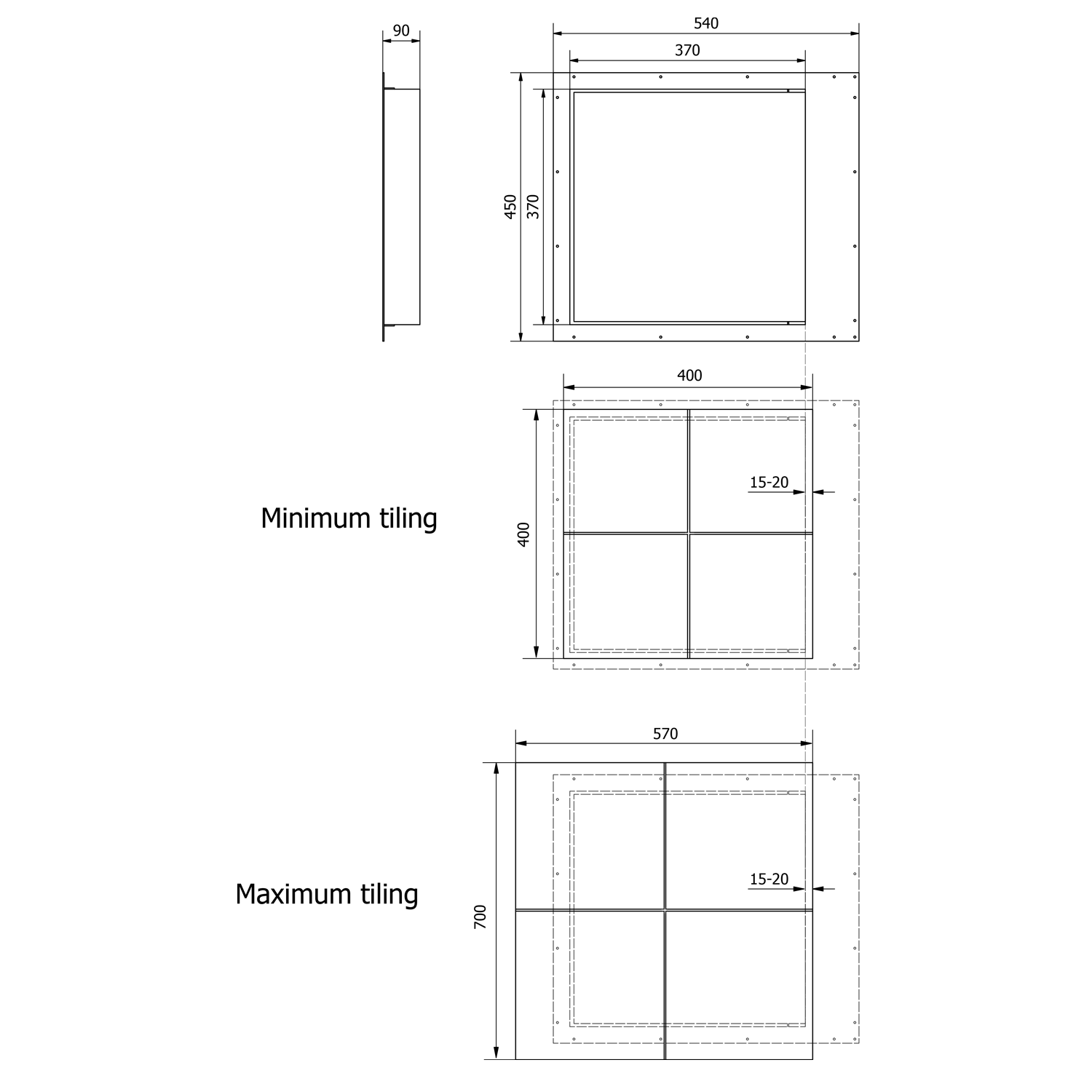 - wymiary drzwiczek: 370 × 370 mm
