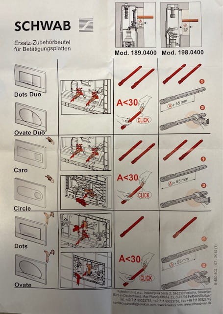SCHWAB 323299 Części zamienne do przycisków spłukujących (Circle, Caro, Dots, Dots Duo, Ovate, Ovate Duo)