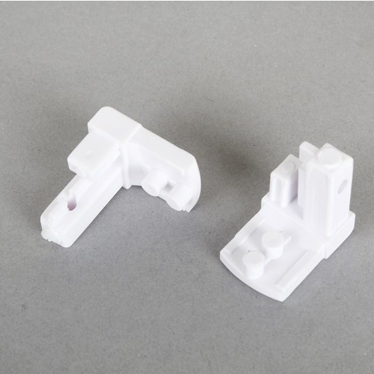 Komplet suwaków wykonanych z tworzywa sztucznego w kolorze białym.
