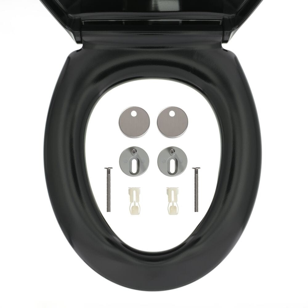 Kompletny zestaw z deską sedesową, zestawem montażowym z zawiasami ze stali nierdzewnej i instrukcją obsługi.