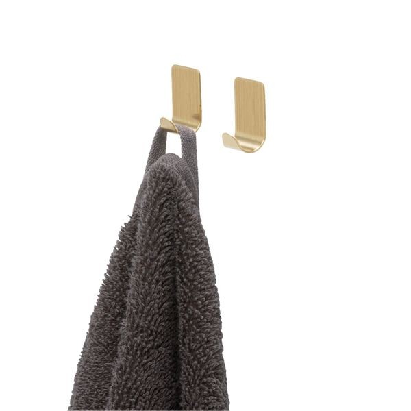 Tiger Basic haczyk w kolorze szczotkowanego złota to eleganckie i funkcjonalne rozwiązanie do nowoczesnych wnętrz. Zestaw zawiera 2 samoprzylepne haczyki, wykonane z wysokiej jakości stali nierdzewnej, która zapewnia trwałość oraz odporność na wilgoć i codzienne użytkowanie.