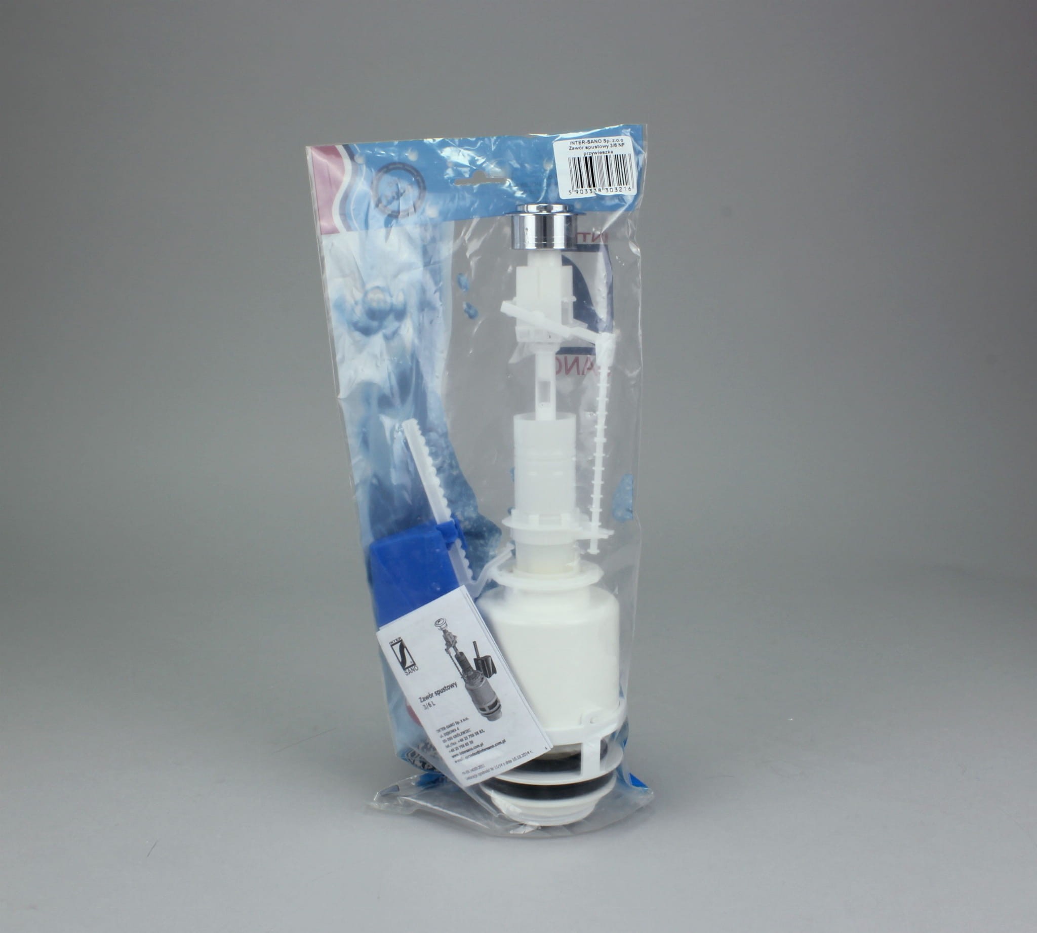 Zawór spustowy przeznaczony do instalowania w spłuczkach ceramicznych i z tworzywa. Możliwość instalacji w pokrywach z otworem o średnicy 38 mm oraz regulacji wysokości. Posiada chromowany przycisk z funkcją 3/6 L, pozwalający na decydowanie o ilości spłukiwanej wody. Zawór spustowy 3/6 L podlega obostrzonym wymaganiom wytrzymałości i funkcjonalności oraz posiada certyfikowany znak NF. Zwiększona żywotność zaworów ze znakiem NF powoduje, że można je bez obaw stosować również w toaletach użyteczności publicznej mogąc polegać na jego wyższej jakości i niezawodności.
